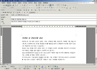 Office XP ¹®¼µéÀ» °ËÅä¿ë ¸ÞÀÏ·Î »ó´ë¹æ¿¡°Ô º¸³» ¹®¼¿¡ ´ëÇÑ ÀǰßÀ» ³ª´ ¼ö ÀÖ´Ù. ¡Ü