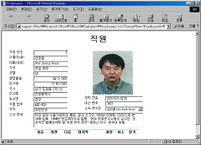 µ¥ÀÌÅͺ£À̽º¿¡¼ ÆäÀÌÁö ¼±Åà ¾Æ·¡ÀÇ Employees (Employees.asp)¸¦ Ŭ¸¯ÇÑ´Ù.