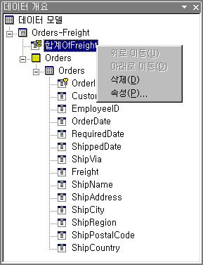 ¨é µ¥ÀÌÅÍ °³¿ä âÀÇ ÇÕ°èOfFreight ÆäÀÌÁö Çʵ带 ¼±ÅÃÇÑ ÈÄ ¸¶¿ì½º ¿À¸¥ÂÊ ´ÜÃ߸¦ ´·¯ ¼Ó¼ºÀ»