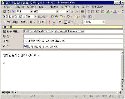 ¨ç A°¡ ¹®¼­¸¦ ÀÛ¼ºÇÑ ÈÄ B, C¿¡°Ô °ËÅä¿ë ¸ÞÀÏ·Î º¸³»±â À§ÇØ ÆÄÀÏ-º¸³»±â-ÀÌ ÆÄÀÏÀ» °ËÅä¿ë ¸ÞÀÏ·Î ¸Þ´º¸¦ ¼±ÅÃÇÑ´Ù.