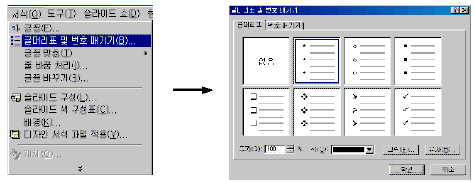 ¡Ü ÆÄ¿öÆ÷ÀÎÆ®2000¿¡¼´Â ±Û ¸Ó¸®Ç¥ ¿Ü¿¡ ¹øÈ£ ¸Å±â±â ±îÁö ÁöÁ¤ÇÒ ¼ö ÀÖÀ¸¸ç ±Û ¸Ó¸®Ç¥¸¦ º¯°æ½Ã¿¡´Â [±×¸²] ´ÜÃ߸¦ ´©¸£¸é [Pictures] ¶Ç´Â [Motion Clip] ¿¡¼ ±Û ¸Ó¸®Ç¥¸¦ ¼±ÅÃÇÒ ¼ö ÀÖ´Ù. ¶ÇÇÑ ¿ÜºÎ¿¡¼ ±×¸²ÆÄÀÏÀ» °¡Á®¿Ã ¼öµµ ÀÖ´Ù.